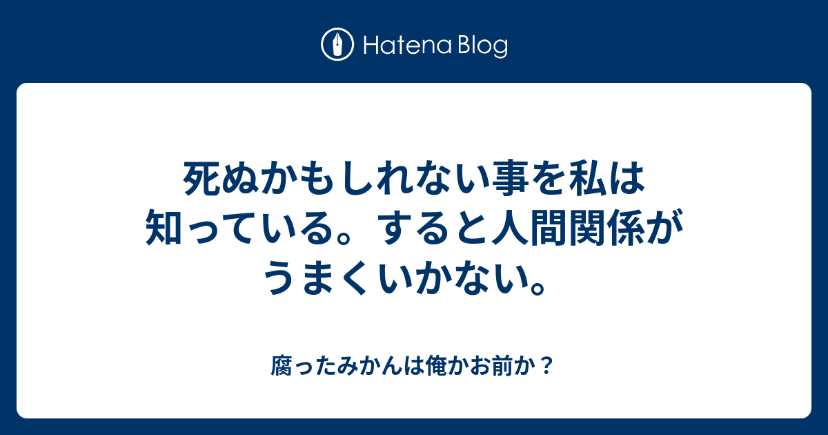 死ぬかもしれない事を私は知っている すると人間関係がうまくいかない 腐ったみかんは俺かお前か