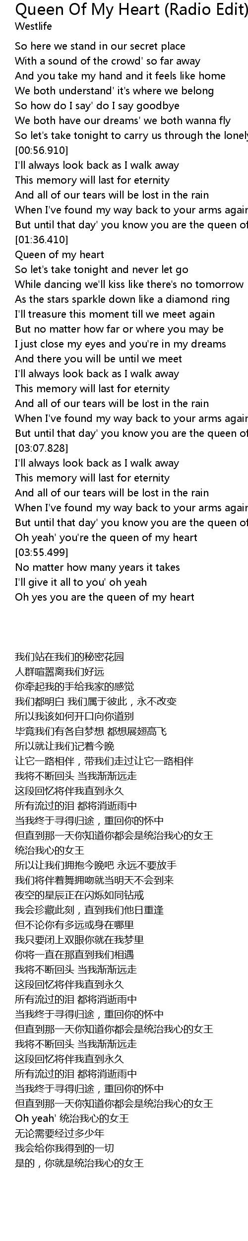 Easily Speaking And Learning English Queen Of My Heart Lyrics Westlife
